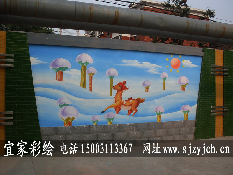 石家庄墙体彩绘 城郊街小学操场彩绘
