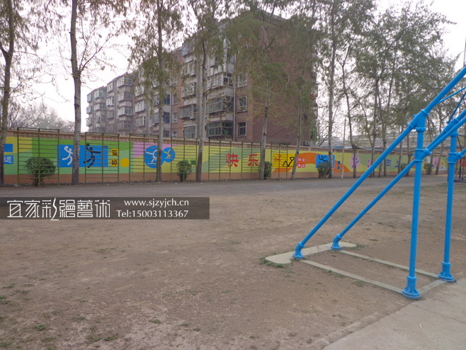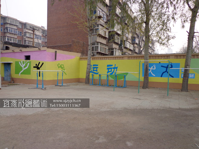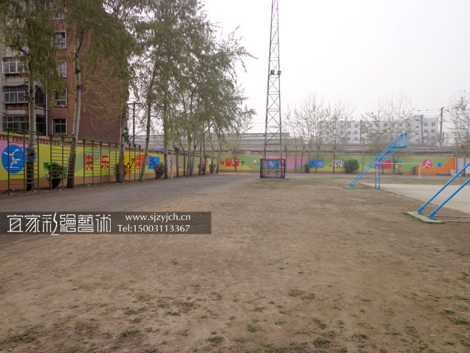 石家庄墙体彩绘 石家庄新华中学操场围墙彩绘