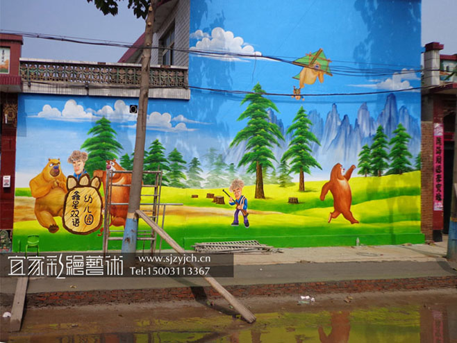 石家庄墙体彩绘 石家庄幼儿园彩绘 熊出没